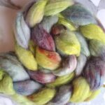 Dyed using Acid Milling dyes shades of bright greens, blue greens with splashes of dark pinks and blues.