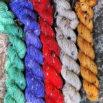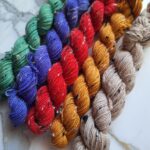 These mini skeins are similar to November but the Grey has been replaced with a Mushroom Colour and the Red is a brighter and the Yellow is more of a Golden Yellow.